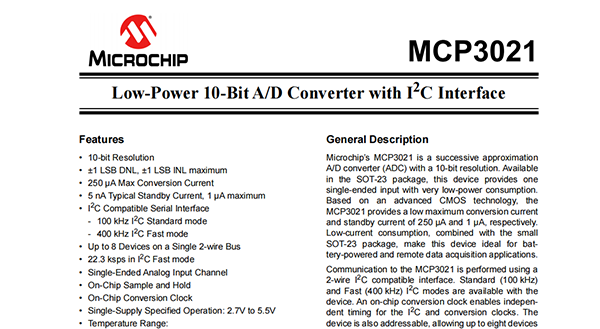 MCP3021A5T-E/OT_带I2C接口的低功耗10位A/D转换器