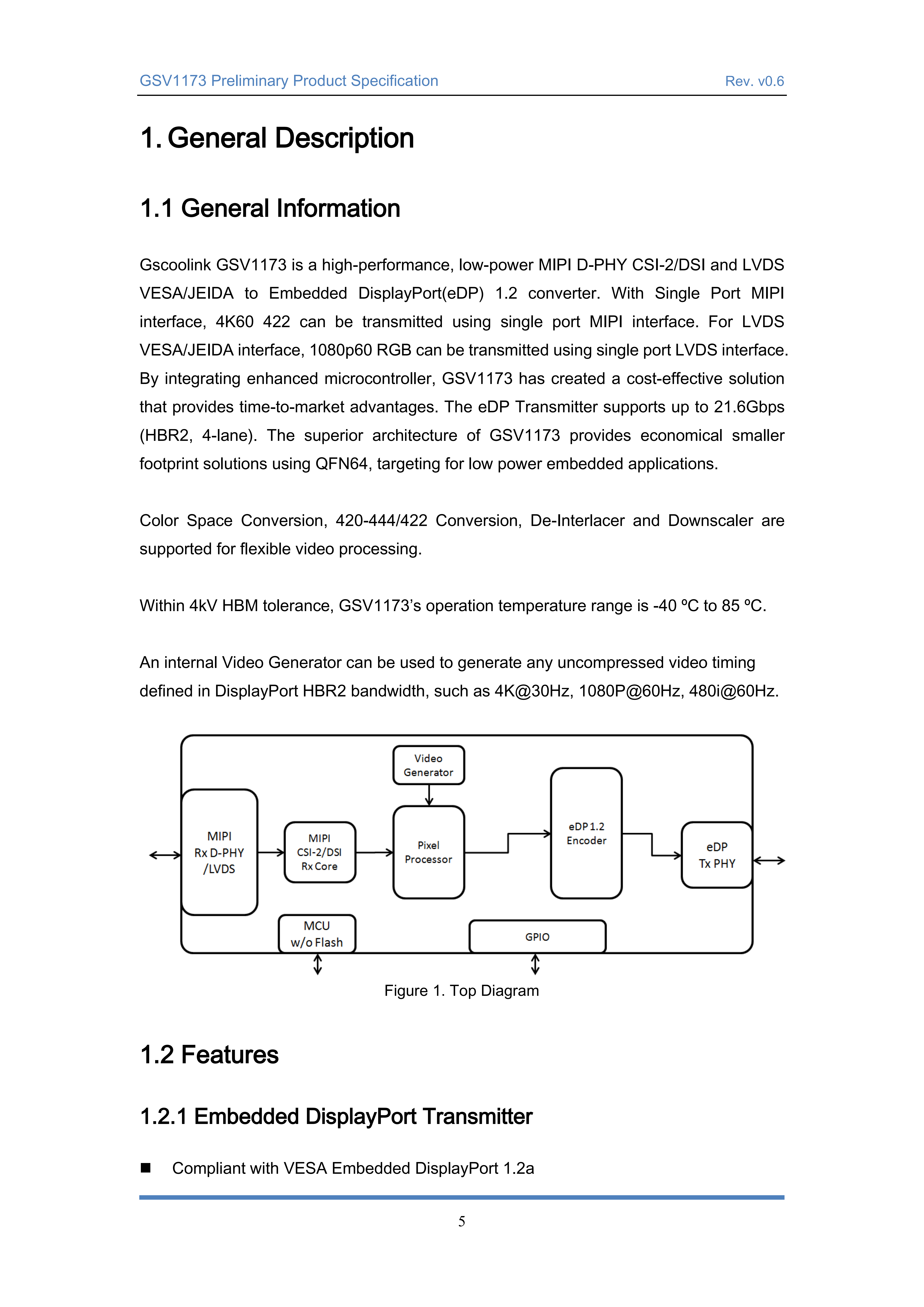内部视频生成器可用于生成在DisplayPort HBR2带宽中定义的任何未压缩视频时序,如4K 30Hz、1080P 60Hz、480i 60Hz。