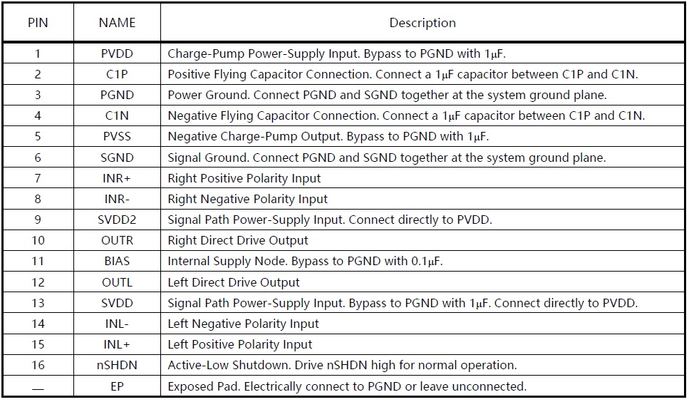 器件内部集成电荷泵产生负电压,器件输出级由输入正电压和该负电压驱动,使得输出偏置在零电位,省去了大尺寸、容易引入失真的输出耦合电容。